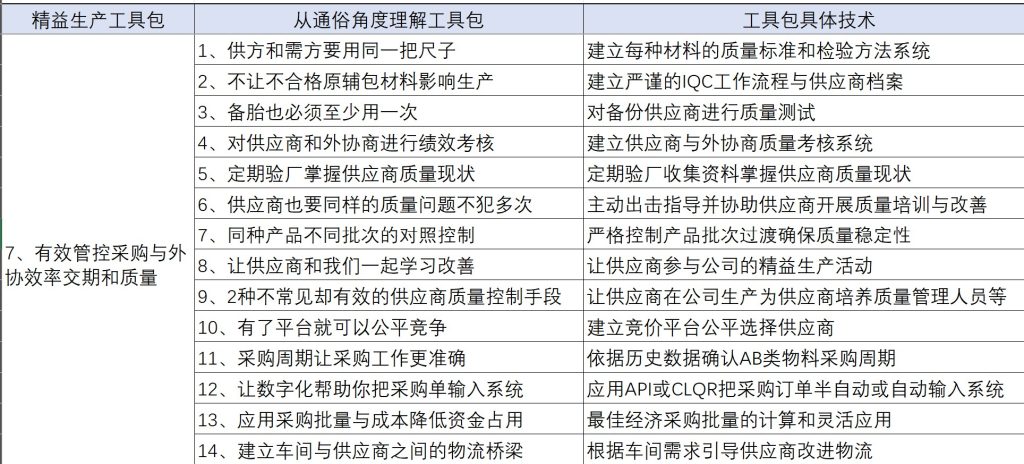 资深精益生产管理专家刘立户在长期的企业咨询与辅导过程中,总结了很多采购与外协管控精益工具包,现在拿出其中的关键方法与技术和大家分享,也就是精益生产工具包之有效管控采购外协PQCD: